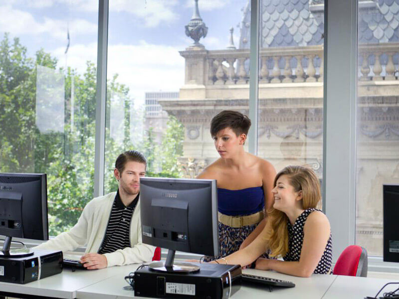 OHCメルボルン校のキャンパスはひとつの建物を併設のビジネス専門学校と共同で利用しています。専門学校には地元のオーストラリア人も多く出入りしていますので、国籍豊かな雰囲気となっています。校舎は電車やバス、トラムの最寄駅からすぐ近くの距離にあり、周辺はカフェや銀行、ショップなどが建ち並ぶ大変便利なエリアです。生徒の年齢層は大部分が20代という若々しさ漂う活気溢れるキャンパスです。年齢層は若いですが学生達は皆熱心で切磋琢磨しながら交流を深めている様子が見られます。学校設備としては教室のほか、各種学習教材がそろったリソースセンター、チュートリアルルーム、ホール、学生ラウンジ、コンピューターラボを完備しています。また講師の多くは、ホルムズメルボルン校のCELTA英語教師養成コースを修了しており、質の高い授業を行っています。